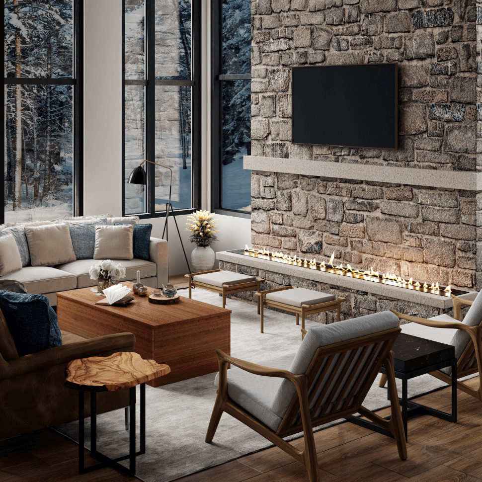 Встраиваемые варианты разделяются на такие как классические, устанавливаемые в подготовленное отверстие в стене или нише. Угловые, которые монтируются в угловую часть стены. Торцевые – открытые с трёх сторон. И сквозные, вид живого огня которых доступен в разных комнатах.